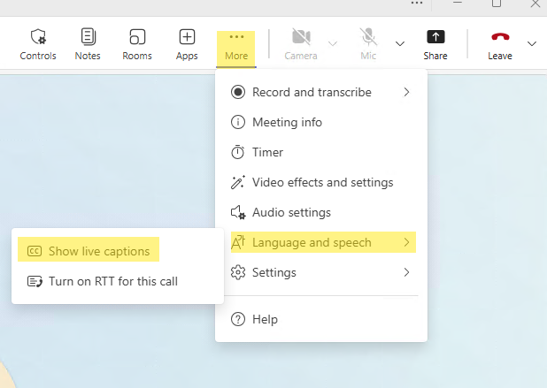 - Captions are in the wrong language: In a meeting, open Caption settings > Language settings, confirm Meeting spoken language, then use Translate to if needed.