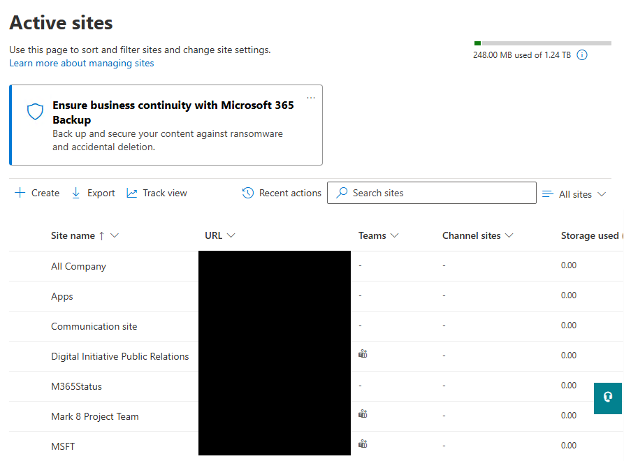 For organizations with many sites, managing permissions site by site in the SharePoint interface gets tedious quickly. The SharePoint admin center gives you a higher-level view. From the admin center at admin.microsoft.com, you can see all sites in your tenant, their sharing settings, storage usage, and primary owners.